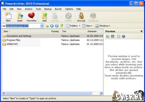 PowerArchiver 2010 - универсальный архиватор с поддержкой всех популярных форматов. Данный архиватор поддерживает форматы ZIP, RAR, 7-ZIP, CAB, LHA (LZH), TAR, TAR.GZ, TAR.BZ2, BH, ARJ, ARC, ACE, ZOO, GZ, BZIP2, XXE, MIME, UUE, XPI, EAR, WAR, REP, JAR, BK, QWK, Quake PK3, скины WinAMP, самораспаковывающиеся архивы в форматах ZIP и CAB, а так же CD-образы: ISO, BIN, IMG и NRG. Это современное приложение, которое сочетает в себе поддержку практически всех популярных архивных форматов. В случае необходимости можно применить шифрование архивов при помощи алгоритмов AES с разной степенью устойчивости (128-bit/192-bit/256-bit). Интерфейс поддерживает смену скинов, работает как в классическом, так и современном виде. Поддержка Windows 7.