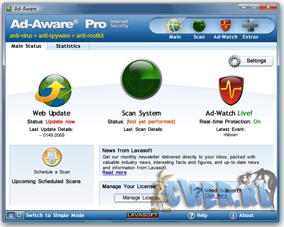 Lavasoft Ad-Aware – это продукт, созданный для обеспечения надежной защиты компьютера от известных угроз – кражи личных данных, агрессивной рекламы, сайтов-паразитов, мошеннических программ, некоторых традиционных троянов, номеронабирателей, вредоносных программ (Malware), браузерных "перехватчиков" (Browser hijackers) и шпионских компонентов.