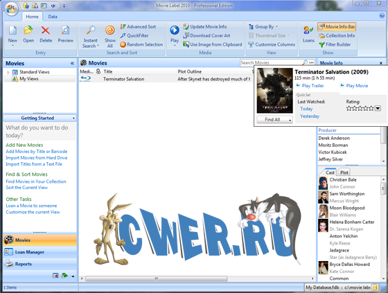 Movie Label - каталогизатор огромных коллекций видео. Является одной из лучших программ-каталогизаторов. Фактически все, что требуется от пользователя, – это указать названия имеющихся у него фильмов. Получив задание, программа автоматически свяжется с онлайновой базой данных и загрузит доступную там информацию – начиная с обложки официального DVD и заканчивая кастингом, кратким содержанием фильма, его форматом и длительностью. Ну а если вы считаете полученные сведения неполными, всегда есть возможность вручную отредактировать информацию или добавить собственное мнение и оценку ленты. Интерфейс Movie Label оставляет только приятные впечатления, а продуманная система «проката» не позволит потерять ценный фильм.