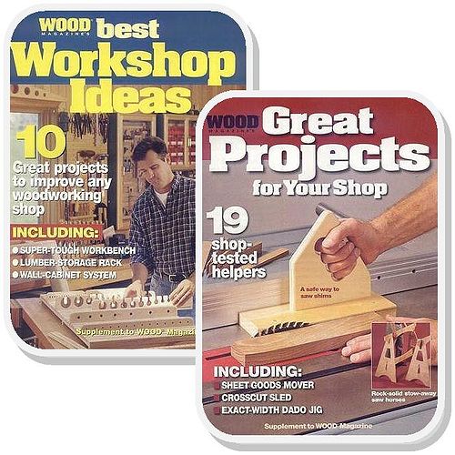 Мини-подборка от журнала Wood посвящена главным образом обустройству домашней мастерской. Приводятся фотографии, схемы, чертежи, инструкции по изготовлению различной специальной мебели для работы и приспособлений для хранения инструмента.