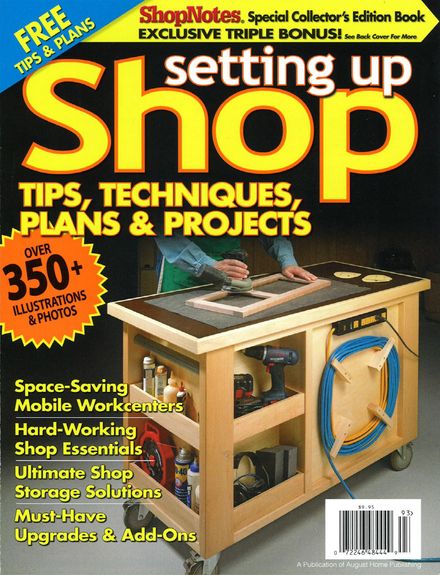 Совместный проект "столярных" журналов ShopNotes и Woodsmith. Вашему вниманию предлагаются фото, схемы, чертежи, инструкции по изготовлению мобильных столов разного назначения, так называемых картов, а также навесных и пристенных шкафов и шкафчиков для хранения инструментов и материалов. Кроме этого дается ряд рекомендаций по освещению и электроснабжению мастерской и технике безопасности.
