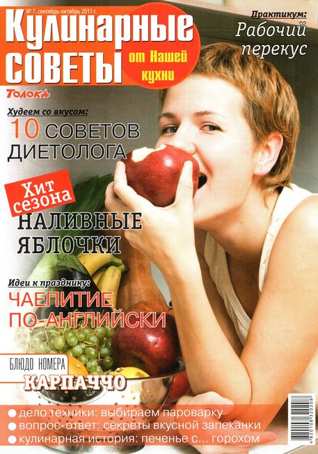 «Кулинарные советы от «Нашей кухни» - актуальное и полезное издание для современных хозяек. В каждом номере – статьи о новинках бытовой техники, выборе продуктов, правильном питании и популярных диетах. А также – советы по обустройству кухни, оригинальные идеи к праздникам, рекомендации по выбору пряностей, интересные факты о продуктах, кулинарные истории, подсказки и мастер-классы от шеф-поваров.