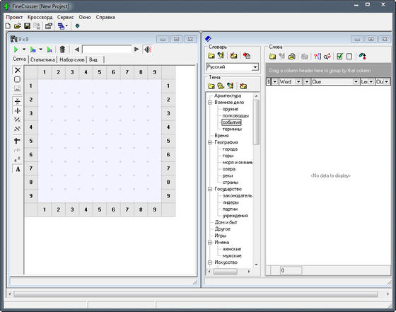 Генератор кроссвордов построит для вас неограниченное количество никогда не повторяющихся головоломок. В качестве базы данных для программы используется около 34000 специально отобранных и обработанных статей из русских толковых словарей.