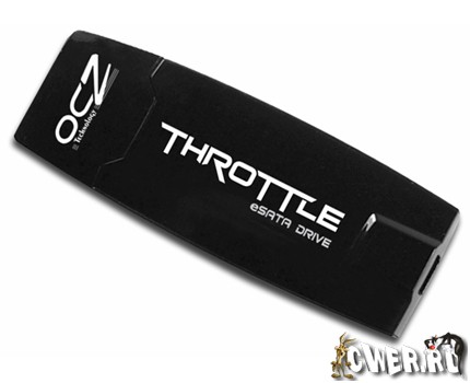Компания OCZ Technology анонсировала выпуск очень любопытного по дизайну портативного флэш-накопителя под названием Throttle, основным интерфейсом у которого для подключения к компьютеру является eSATA. К слову, в устройстве на всякий случай предусмотрен ещё и порт Mini USB 2.0, однако для возможности его использования потребуется соответствующий соединительный кабель.