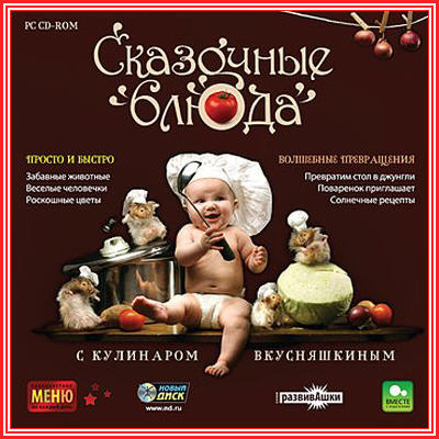 С новым диском "Сказочные блюда с кулинаром Вкусняшкиным" ваш ребенок превратится в классного повара! Он научится готовить разные блюда на каждый день и для больших праздников, украшать их и оформлять стол. Всегда ли нужны украшения, какие из них подходят для того или иного блюда, особенности их изготовления - об этом и многом другом маленьким поварятам расскажет этот диск.