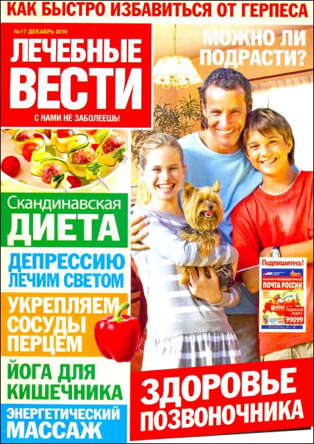 «Лечебные вести» — яркий журнал о здоровье для всей семьи. Его целевая аудитория — мужчины и женщины от 30 лет и старше. Каждый член семьи найдет в нем интересные для себя рубрики, узнает много нового и полезного о здоровье.