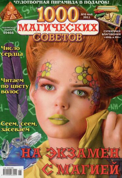 Журнал магических советов, основанных на старинных поверьях и приметах, народной мудрости. Все советы применимы в обычной жизни, помогают предотвратить болезни и укрепить здоровье без лекарств, обрести и не потерять настоящую любовь, привлечь счастье и удачу, увеличить доходы, наполнить дом положительной энергией и защитить себя и близких. В каждом номере вас ждет подарок – талисман, амулет или оберег. Майский выпуск рассказывает о том, как заручиться поддержкой госпожи Фортуны во время подготовки к экзаменам и привлечь к себе удачу в момент их сдачи.