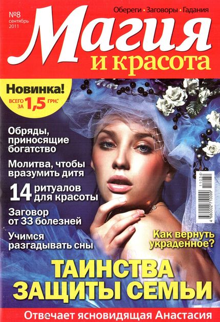 Журнал магических советов, основанных на старинных поверьях и приметах, народной мудрости. Все советы применимы в обычной жизни, помогают предотвратить болезни и укрепить здоровье без лекарств, обрести и не потерять настоящую любовь, привлечь счастье и удачу, увеличить доходы, наполнить дом положительной энергией и защитить себя и близких. В каждом номере вас ждет подарок – талисман, амулет или оберег. Основная тема выпуска - рассказ о том, как подготовиться и провести свадебное торжество, чтобы мощную магическую силу этого дня никто не использовал против вас.