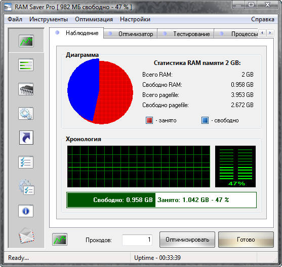 Утилита RAM Saver Pro – это инструмент для профессионального мониторинга, очистки и оптимизации оперативной памяти. Служит для повышения производительности операционной системы, освобождая оперативную память от драйверов и процессов Windows для приложений, требующих максимальную загрузку процессора и оперативной памяти.