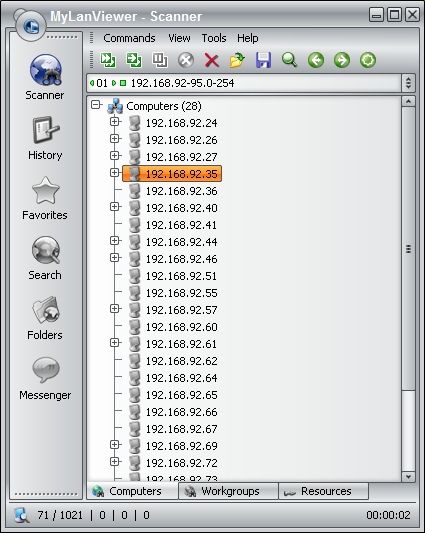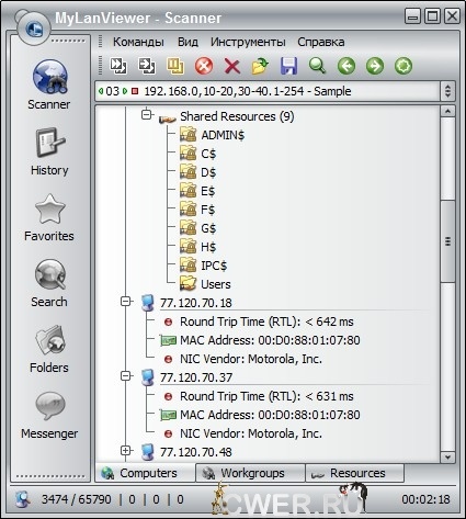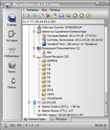MyLanViewer - это мощный сетевой сканер, который отображает в своем окне все компьютеры вашей сети и показывает их имена, IP-адреса, MAC-адреса, общие ресурсы и другие технические детали для каждого компьютера.