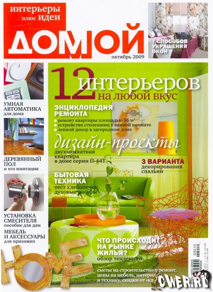Журнал "Домой. Интерьеры плюс идеи" - это максимум самой полезной и интересной информации, способной помочь каждому при обустройстве своего жилого пространства. Существенной составляющей журнала является то, что в нем можно найти основные потребительские характеристики товаров для дома и цены на строительные и отделочные материалы, оборудование, сантехнику, бытовую технику, расценки на строительные работы, а также стоимость мебели, предметов декора и многих других вещей, делающих жильё более комфортным. Журнал «ДОМОЙ» рассказывает о самых интересных тематических выставках, о новинках техники, материалов, мебели и аксессуаров, знакомит с принципами их выбора, проводит тесты бытового оборудования.