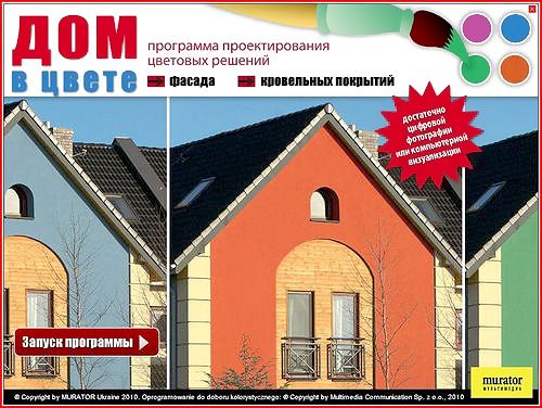 Специальное приложение к июньскому номеру журнала Murator было создано для того, чтобы быстро подбирать цвета для существующих или проектируемых фасадов и кровель. Для его запуска не требуется предварительной установки, кроме того авторы приложили максимум усилий, чтобы мультимедийный продукт работал на всех существующих компьютерах нашего рынка.