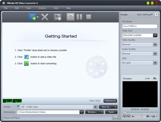 4Media HD Video Converter - профессиональный конвертер, поддерживающий видео высокой четкости HD, включая форматы AVI, H.264/AVC, MKV, AVCHD, HD MPEG4 TS, HD MPEG2 TS, HD WMV, HD Quick Time и т.д.. Также вы можете преобразовать общее видео и аудио форматы для воспроизведения на различных цифровых устройствах. Программа содержит множество готовых к использованию видео и аудио форматов классифицированы по типу устройства (IPOD, iPhone, Apple TV, PSP/PS3, Xbox и т.д.) что позволяет с легкостью выбрать нужный формат.