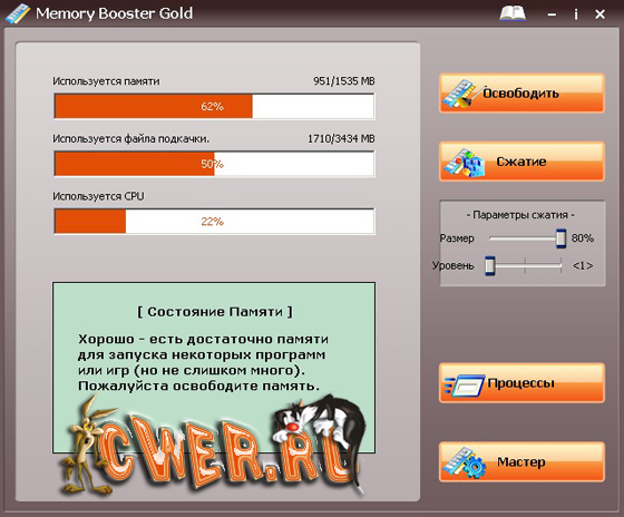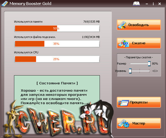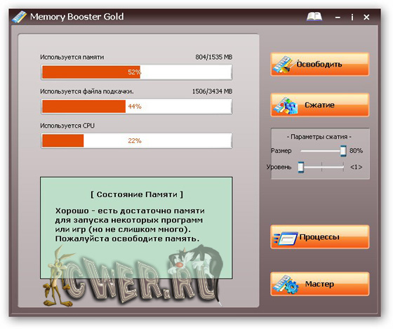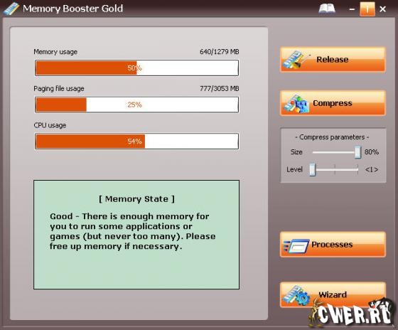 Memory Booster Gold - средство для решения различных проблем, связанных с оперативной памятью компьютера. Это богатая возможностями и легкая в использовании программа. Посредством мониторинга и управлением системной памятью компьютера, позволяет уменьшать время загрузки и повысить производительность вторичных приложений, запускаемых на вашей системе.