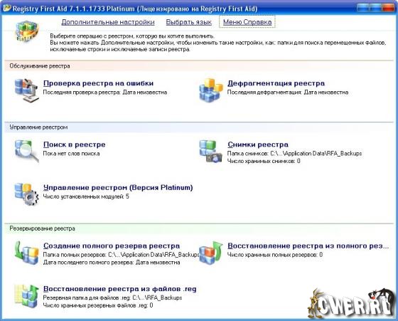 Registry First Aid Platinum - сканирует реестр на предмет испорченных или ненужных записей (оставшихся после удаления программ), тем самым обеспечивает более быструю работу компьютера и предотвращает сбои. Программа автоматически просматривает системный реестр и обнаруживает неверные ключи, которые вы сможете исправить или удалить. Также утилита производит поиск записей и сравнение их с файлами на диске и если найдена запись, соответствующая файлу, который был перемещен в другую папку, то программа скорректирует эту запись в реестре. Программа имеет опцию резервного копирования и восстановления реестра на случай, если система даст сбой. Утилита ищет неверные, поврежденные или лишние записи в реестре, пытается их исправить, а при невозможности этого - удаляет. Работа с RFA не вызовет трудностей, так как имеется достаточно удобный и понятный визард. Кроме этого, используя Registry Operator, вы можете управлять приложениями, которые запускаются вместе с Windows и Internet Explorer.