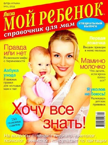 Специальный выпуск журнала "Лиза. Мой ребенок", посвященный очень важному этапу в развитии малыша. Вот почему журнал обязательно будет интересен мамам и папам, родственникам и друзьям семьи. Приданое для младенца, уход за малышом, его питание и развитие — да мало ли еще какие темы волнуют новоиспеченных маму и папу!