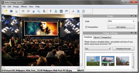 Auto Collage Studio - простая в использовании программа, которая поможет вам создавать коллажи из ваших цифровых фотографий, делая при этом из них произведения искусства. Создание коллажей - это расслабляющее времяпровождение, помогающее превращать собранные фотографии в драгоценные воспоминания. Благодаря данной программе вы сможете добавить текст и применить различные шаблоны и эффекты к изображениям. Также вы сможете легко напечатать, сохранить коллажи в одно изображение и даже поделиться Вашими фотографиями с друзьями и близкими.