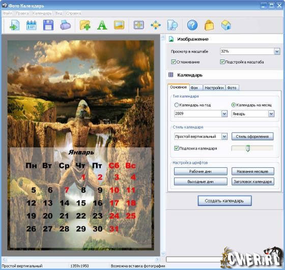Фото Календарь - удобная программа для создания календарей с фотографиями. Создавайте красивые календари с вашими фото быстро и легко! За несколько минут Вы сможете получить календарь нужного формата и стиля - от карманного до настенного, на целый год или на месяц. Выбирайте оригинальный дизайн календаря - строгий или изящный, деловой или романтичный... Программа генерирует календарные сетки не только на 2009 год, но и на любой другой. Календари можно также экспортировать для обработки в других графических редакторах.