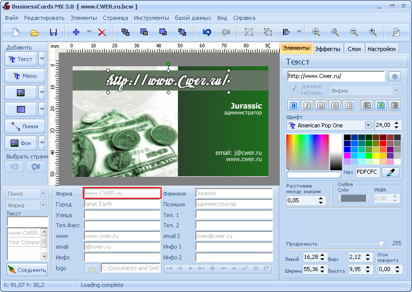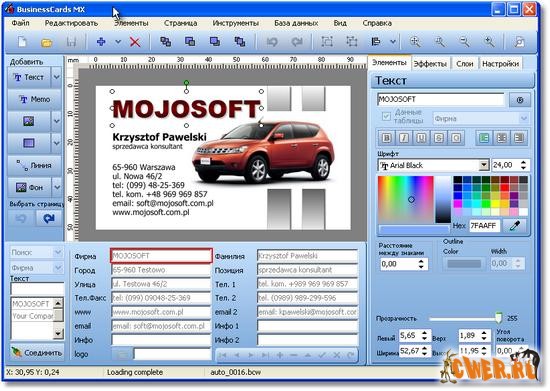 Программа BusinessCards MX для создания и проектирования визиток.