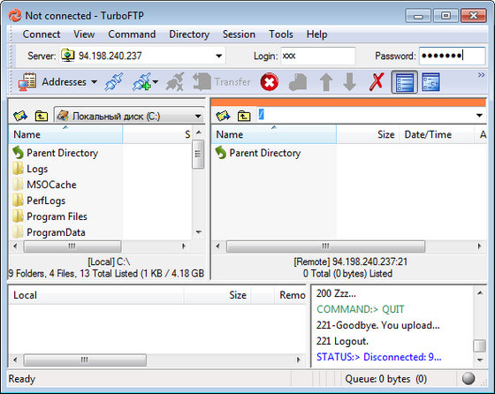 TurboFTP - защищенный FTP клиент с широкими функциональными возможностями, с помощью которого можно легко производить передачу файлов через Интернет. Программа позволяет вам передавать файлы, загружая или скачивая их, на высокой скорости между вашим компьютером и виртуальным FTP сервером с исключительной легкостью и, при необходимости, с возможностью шифрования передачи. Обладая простым и легким в использовании интерфейсом, с помощью данной программы пользователь сможет выполнять такие задачи, как загрузка веб сайта, планирование синхронизации и резервирования файлов и папок, а также критически важные корпоративные файловые передачи. Программой поддерживаются брандмауэры, в том числе HTTP прокси, SOCKS 4, SOCKS 4a и SOCKS 5, а также защищенные соединения SSL/TLS.