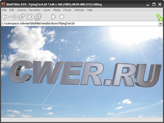 BluffTitler DX9 - это программа для создания красивых текстовых эффектов, применяемых при DVD-авторинге, а также трехмерной мультипликации. Результат можно просматривать в реальном времени с экспортом в картинку, видео формат, VJ и вебсайты. Мультипликации построены из слоев, которые могут отделяться независимо. Программа поддерживает множество различных типов слоев: камера, свет, текст, картика, видео, плазма, частица и аудио и т.д. Слои могут быть связаны друг с другом для создания специальных эффектов. Программа тесно интегрируется с такими пакетами как: Pinnacle Studio, Sony Vegas, Ulead VideoStudio, MAGIX Video, Canopus Edius и Adobe Premiere.
