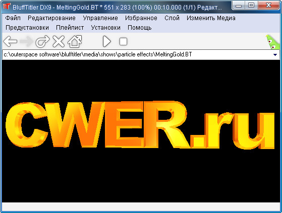 BluffTitler DX9 - это программа для создания красивых текстовых эффектов применямых при DVD - авторинге, а также трехмерной мультипликации. Результат можно просматривать в реальном времени с экспортом в картинку, видео формат, VJ и вебсайты. Мультипликации построены из слоев, которые могут отделяться независимо. BluffTitler поддерживает множество различных типов слоев: камера, свет, текст, картинка, видео, плазма, частица и аудио и т.д. Слои могут быть связаны друг с другом для создания специальных эффектов. Программа тесно интегрируется с такими пакетами как: Pinnacle Studio, Sony Vegas, Ulead VideoStudio, MAGIX Video, Canopus Edius и Adobe Premiere.