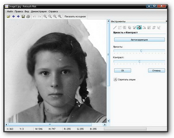 Программа Retouch Pilot разработана для удаления нежелательных объектов и ретуши любых дефектов, существующих на фото или появившиеся при сканировании. Retouch Pilot позволяет восстановить старые фотографии. Вы сможете удалить дефекты, появившиеся при долгом хранении, такие как трещины эмульсии и фиксажные пятна, и даже восстановить оторванные уголки на оцифрованном изображении.