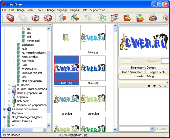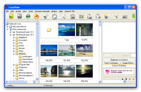 FreshView - универсальный просмотровщик и конвертер мультимедийных файлов. Fresh View позволяет просматривать графические и воспроизводить аудио/видео файлы различных форматов. В этой версии поддерживается 86 различных форматов (практически с каждым обновлением разработчики добавляют поддержку новых форматов). Кроме того, предусмотрена возможность переводить некоторые файлы из одного формата в другой. Интерфейс выполнен в классическом для графических просмотрщиков стиле: в левой части дерево дисков, в правой - превью-изображения просматриваемых объектов. Отдельно стоит отметить возможность Fresh View создавать HTML-альбомы из директорий с графикой.