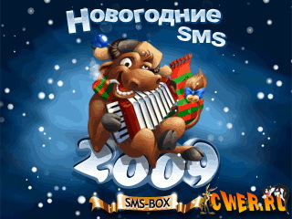Символ 2009 года - желтый бык - уже несется в нашу жизнь, создавая атмосферу праздника и веселья! Опередить быка и ярко поздравить друзей, коллег и любимых людей тебе поможет выпуск "SMS-BOX: Новогодние SMS 2009". Более 300 авторских SMS, 30 новогодних открыток и множество голосовых сообщений - в этом поздравительном разнообразии ты обязательно найдешь, чем порадовать близких. Размеры экранов: 128х128, 128х160, 176х204, 176х208, 176х220, 208х208, 240х320, 320х240, 352х416.