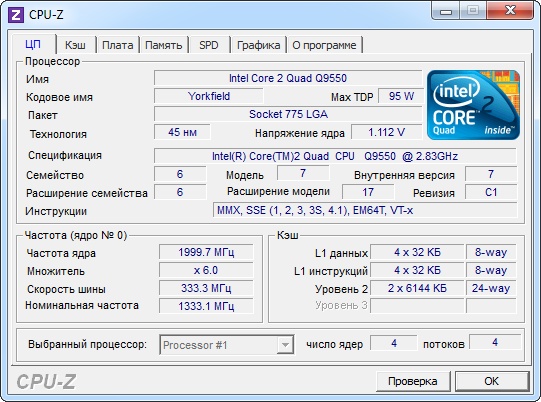 CPU-Z - утилита, которая предоставит вам самую подробную информацию об установленном в системе процессоре, памяти, кэше и материнской плате. Программа обладает небольшим размером, удобным выводом сведений о компонентах и поддерживает практически все типы процессоров и материнских плат.