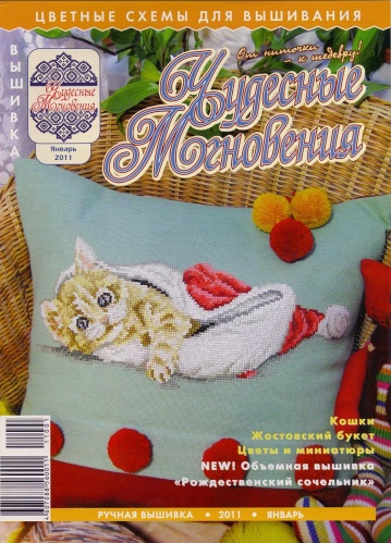 Выпуск известного журнала по вышивке крестиком с чудесными схемами веселых кошек, орнаментов для подушек и закладок, миниатюрных пейзажей.