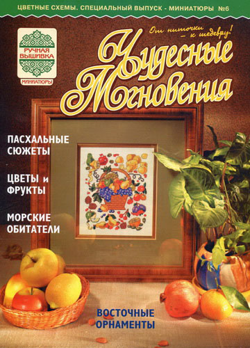 В специальном выпуске журнала "Чудесные мгновения" – красочные миниатюры для вышивки крестом. В номере представлены цветные схемы разных миниатюр: фрукты, пасхальные сюжеты, цветы, орнаменты востока, морские обитатели.