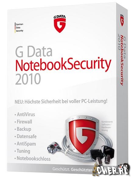 G Data NotebookSecurity предлагает особый пакет программ специально для ноутбуков. В этот пакет включены G Data InternetSecurity с модулем резервного копирования и шифрования данных, а также замок для ноутбука, которые образуют вместе идеальную защиту Вашего ноутбука. В новой версии поддерживается также и полная 64-битная версия. Из-за повышенного риска повреждения, ноутбуки нуждаются в большей защите, чем настольные ПК. G Data 2010, обладая традиционно высокими показателями в обнаружении вирусов, теперь работает практически незаметно, что обеспечивается новыми технологиями сканирования — самообучающаяся система сигнатурного поиска или использование белых списков.