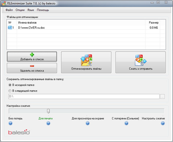 FILEminimizer Suite - это программа для сжатия документов Word, таблиц Excel, презентаций PowerPoint, файлов изображений и PDF без изменения формата файла.