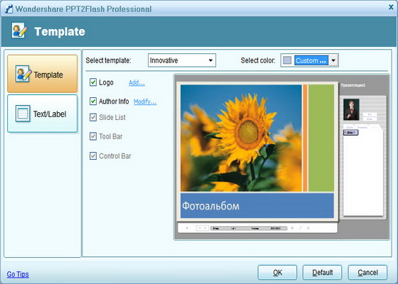 Wondershare PPT2Flash Professional позволяет c легкостью создавать профессиональные Flash презентации в несколько кликов. С данной программой, вы можете добавить тексты, графику, звуки, flash фильмы для своих презентаций. Присутствует возможность создавать содержание SCORM/AICC для LMS. Программа интегрируется в PowerPoint что дает возможность одновременно работать в двух приложениях.