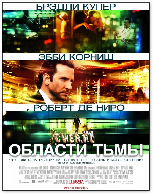 Нью-йоркский рекламщик Эдди, желая преодолеть чёрную полосу в жизни, принимает засекреченный препарат под названием NZT. Таблетка выводит мозг парня на работу в нереальной мощности. Этот творческий наркотик меняет всю жизнь Эдди, за короткий срок он зарабатывает кучу денег, но скоро начинает страдать от зловещих побочных эффектов препарата. А когда пытается найти других NZT-гениев, чтобы понять, как можно справиться с этим пристрастием, он узнает страшную правду…