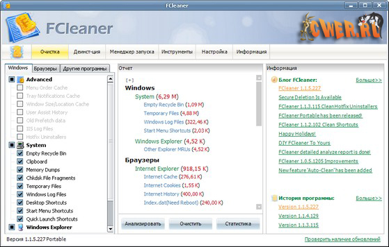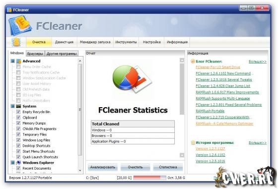 FCleaner - комплексный пакет для очистки и оптимизации системы.