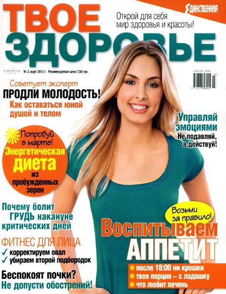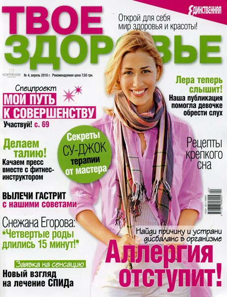 Журнал «Твое здоровье» - это актуальные советы и рекомендации специалистов по здоровому образу жизни, воспитанию детей, косметологии, правильному питанию, а также реальные истории исцеления людей, диеты, кулинарные рецепты, упражнения для поддержания идеальной формы, конкурсы и призы. Здоровье в твоих руках!