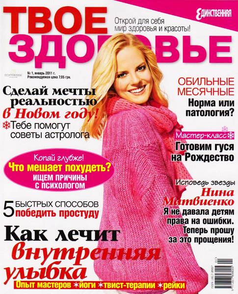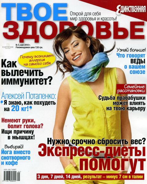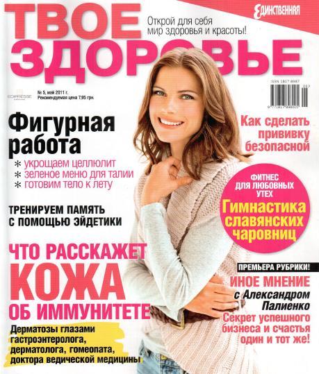 «Твое здоровье» - современный компетентный журнал о здоровье для женщин, которые хотят знать больше о профилактике и грамотном лечении различных заболеваний. Это источник свежей и достоверной информации во всех областях, связанных со здоровым образом жизни – медицине, диетологии, красоте, фитнесе, психологии.