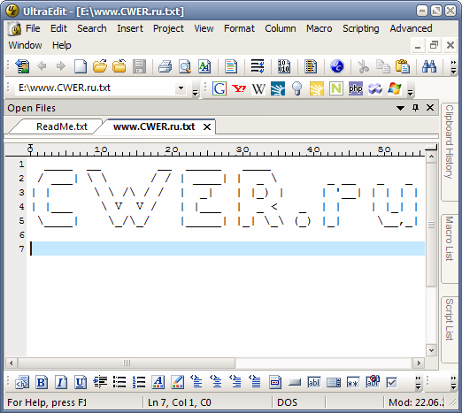 UltraEdit - программа является многофункциональным многооконным редактором с гибкой и мощной системой настроек, также имеется встроенный FTP клиент. Программа предназначена для редактирования текстовых, HEX и HTML файлов, размером до 2 GB. Имеется подсветка синтаксиса при написании программ на C/C++, VB, HTML, Java, Perl, FORTRAN и LaTex. Также, предусмотрена возможность подключения дополнительных словарей с синтаксисом других языков, библиотек тэгов и макросов. Имеется огромное количество дополнительных функций и настроек.