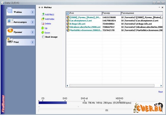 Компания Protectedsoft выпустила новую версию программы для записи CD- и DVD-дисков FinalBurner PRO 2.3.0.171. FinalBurner PRO поддерживает запись на CD-R/RW, DVD R/RW, DVD-R/RW, DVD DL, HD-DVD, Blu-Ray, а также создание ISO-образа диска. Для записи CD-аудио подходят многие музыкальные форматы (WAV, MP3, OGG, WMA, MID и т.д.); при создании видео-DVD в проекте можно использовать файлы форматов AVI, MPEG4, MP4, MPG, WMV, ASF, MOV, а также данные, получаемые из Webcam, TV-тюнера и т.п.