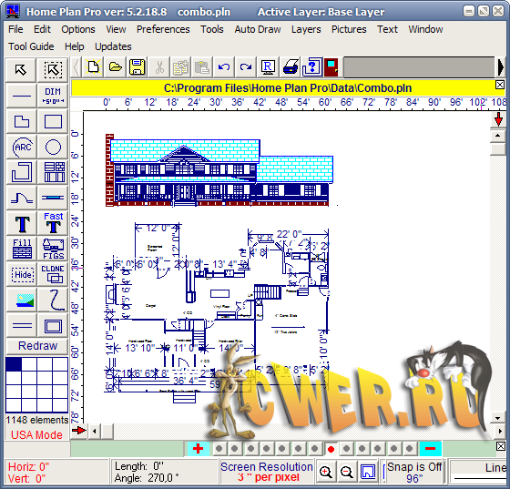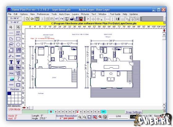 Home Plan Pro - отличная программа для быстрого и легкого черчения плана помещений, мест и архитектурного дизайна. Программа предлагает множество различных инструментов, которые помогут вам начертить план вашего дома, квартиры, жилых помещений и т.д. Пользователю предлагаются такие инструменты, как линии, овалы, прямоугольники, черчение стен, дверей, окон, арок, кирпичных стен, вставка изображений, текста, дублирование предыдущего элемента и многое другое. Программа поддерживает две меры измерения: американское измерение и метровое измерение. Готовый план помещений вы можете распечатать на принтере. Вы можете выбрать особый размер или максимальный размер на весь лист бумаги при печати черчежей. Home Plan Pro заменяет многие САПР программы.