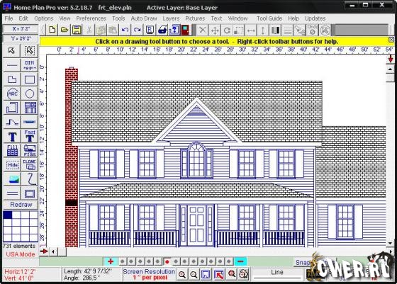 Home Plan Pro - отличная программа для быстрого и легкого черчения плана помещений, мест и архитектурного дизайна. Программа предлагает множество различных инструментов, которые помогут вам начертить план вашего дома, квартиры, жилых помещений и т.д. Пользователю предлагаются такие инструменты, как линии, овалы, прямоугольники, черчение стен, дверей, окон, арок, кирпичных стен, вставка изображений, текста, дублирование предыдущего элемента и многое другое.
