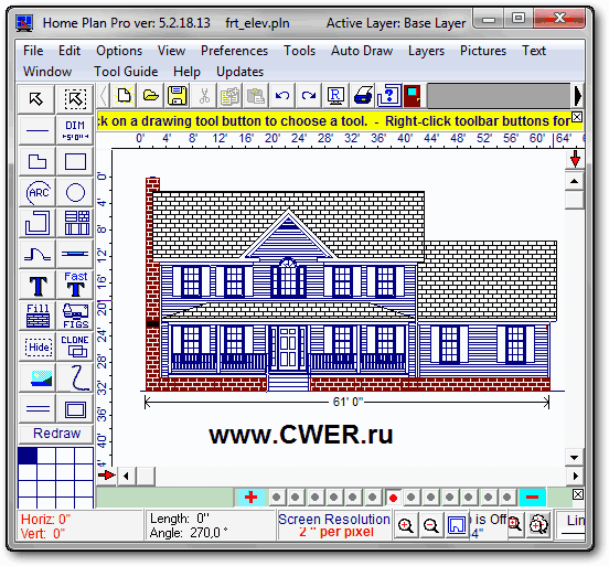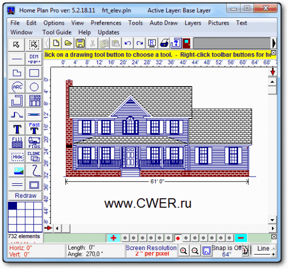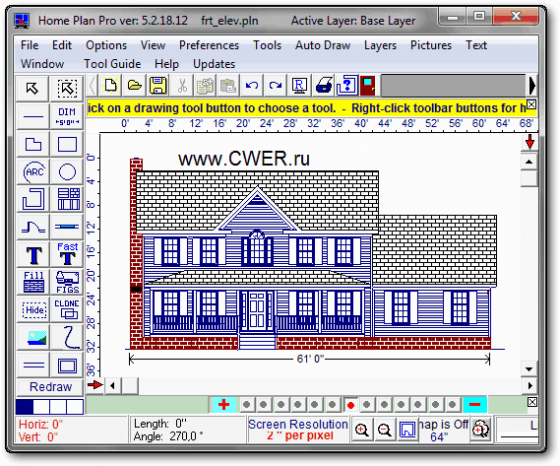 Отличная программа для быстрого и легкого черчения плана помещений, мест и архитектурного дизайна. Программа предлагает множество различных инструментов, которые помогут вам начертить план вашего дома, квартиры, жилых помещений и т.д. Пользователю предлагаются такие инструменты, как линии, овалы, прямоугольники, черчение стен, дверей, окон, арок, кирпичных стен, вставка изображений, текста, дублирование предыдущего элемента и многое другое.