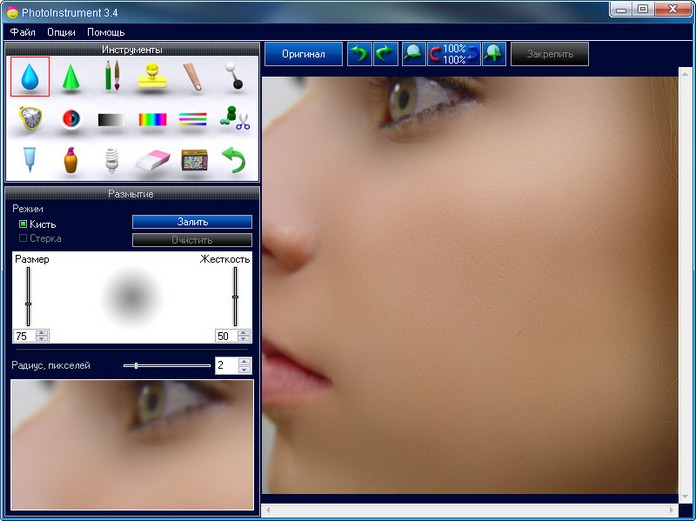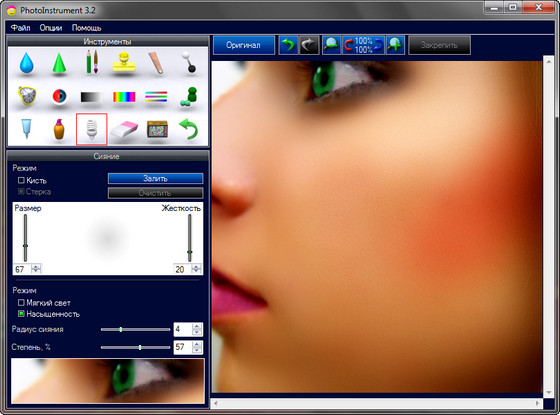 PhotoInstrument - легкий редактор для обработки портретов цифровых фотографий. От Очистителя кожи до придания ему гламурного вида "глянцевых журналов", попутно включая инструменты для: ретуширования, удаления красных глаз, сглаживания морщин, увеличения чёткости, коррекции цвета и многого чего еще, для приданию портрету совершенного вида и желаемой привлекательности.