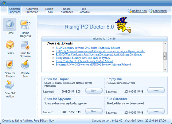 Вышла новая версия Rising PC Doctor - относительно небольшой, но в тоже время профессиональной и удобной программы по обеспечению безопасности компьютера. Включает пакет весьма полезных функций, среди которых: автоматический анализ вредоносных программ, установка защиты на USB устройства хранения, возможность восстановления Microsoft Internet Explorer и Windows, программа обнаружения и блокировки троянов, защита от вредоносных веб сайтов, защита веб браузера и инструмент блокировки загрузки троянов...