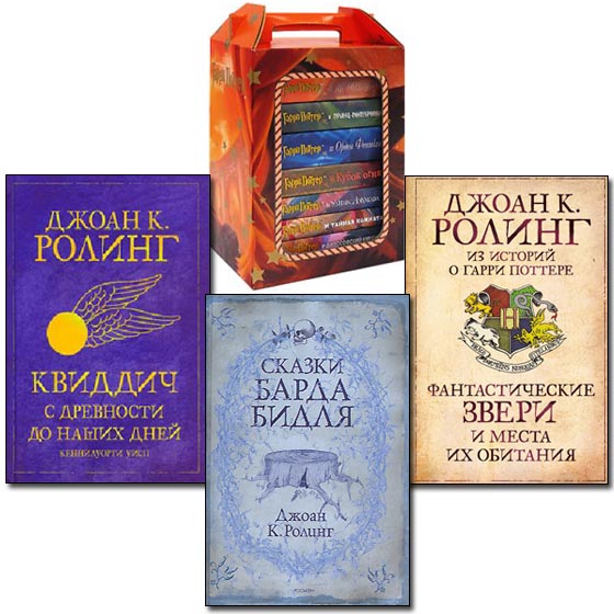 Помимо семи книг серии о юном волшебнике Гарри Поттере английской писательницы Джоан Кэтлин Роулинг в подборку вошли также книги "Волшебные твари и где их искать", "Квиддитч сквозь века " и "Сказки барда Бидля".