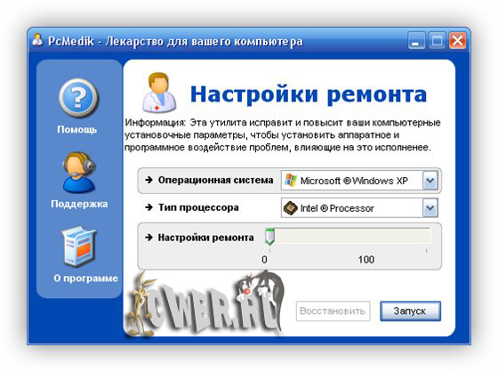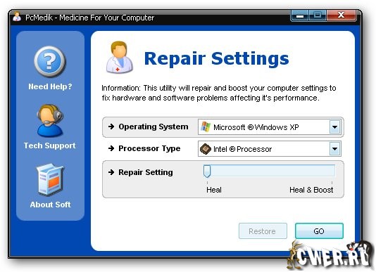 PCMedik - это небольшая программа, предназначенная для настройки параметров и оптимизации работы операционных систем Windows, позволяет уменьшить количество зависаний, "падений" и т.д. Вся работа с программой осуществляется посредством простого интерфейса. Требуется лишь указать операционную систему (Windows XP, например), производителя процессора (Intel, AMD, другой) и выбрать, что необходимо сделать: "вылечить" или "вылечить и оптимизировать". После применения PCMedik может заметно возрасти скорость работы приложений в среде Windows.