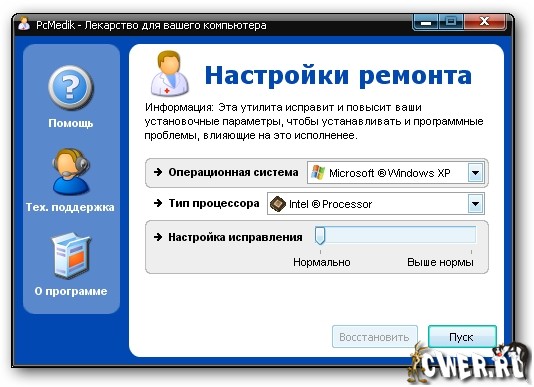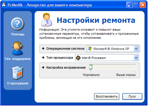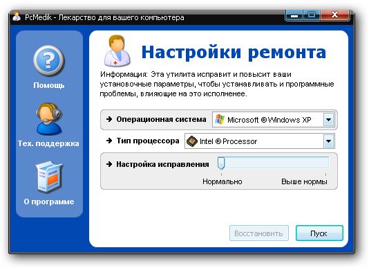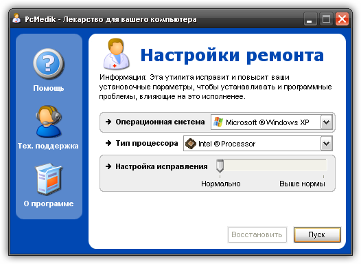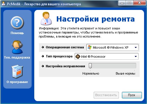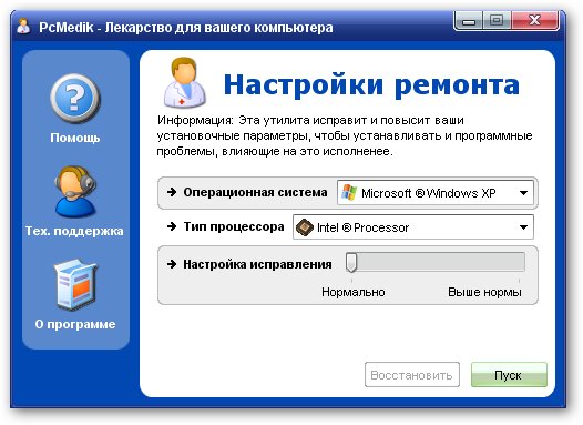 PcMedik - это небольшая программа, предназначенная для настройки параметров и оптимизации работы операционных систем Windows, позволяет уменьшить количество зависаний, "падений" и т.д. Вся работа с программой осуществляется посредством простого интерфейса.