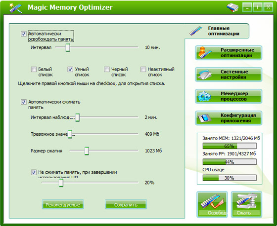 Magic Memory Optimizer разработан для того, чтобы избежать всех сложностей связанных с управлением памятью. Память – это самый ценный ресурс на компьютере, когда памяти не хватает, компьютер может медленно функционировать или сломаться. Windows не управляет памятью на должном уровне. Со временем, неважно сколько памяти у вас останется, Windows будет постепенно сжирать остатки памяти, что вскоре приведет вашу систему к краху.